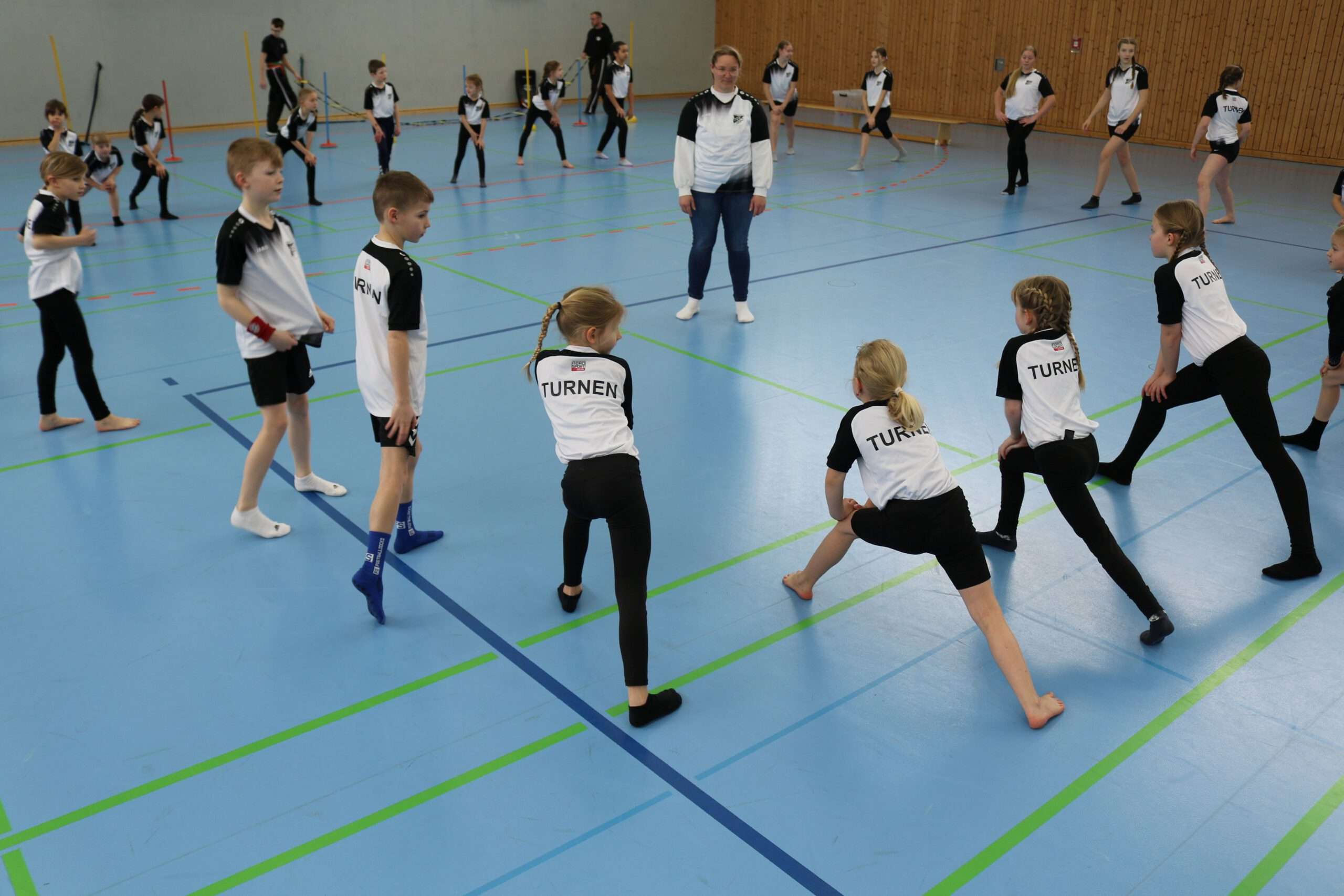 Am 14. März 2026 haben wir unseren dritten Turntag veranstaltet. Um 13 Uhr marschierten alle Kinder mit Musik in die Halle ein. Nach einer kurzen Begrüßung ging es auch direkt los. Die 4- bis 6-Jährigen starteten mit Tüchern und viel Power. Danach die 6- bis 8-Jährigen, die ihr Aufwärmprogramm selbst gestalteten und zeigten, was sie an den Geräten schon können – jeder hatte sein Lieblingsgerät. Die 9- bis 13-Jährigen turnten gemeinsam alle Geräte durch und präsentierten anschließend ihre selbst ausgedachten Küren, die zu zweit oder alleine vorgetragen wurden.